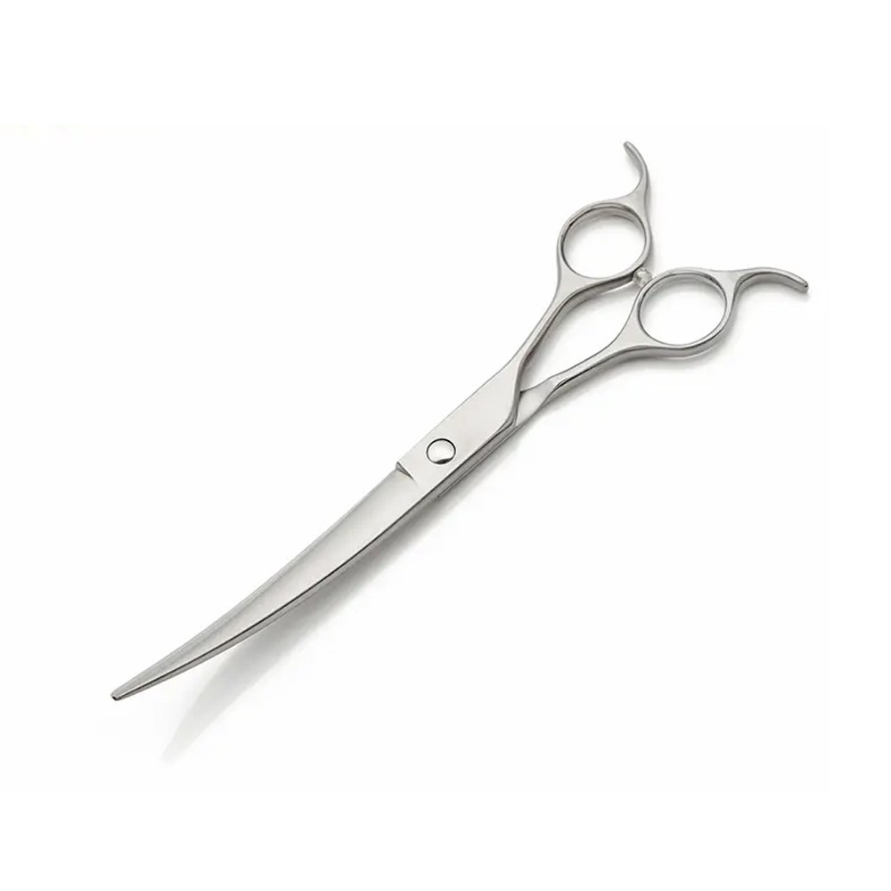 ● This 7.5 inch super curved dog grooming scissors is specially designed for dog owners and groomers beginners and professional pet groomers. This super curved scissors has a curvature of 40 degrees, the curve is downward, and it is suitable for trimming the arc of pet body parts, such as big round head, buttocks, waist, and hind limbs. At the same time, when the pet groomer turns the scissors over, the face and mouth of the pet can also be trimmed with the curve upward.