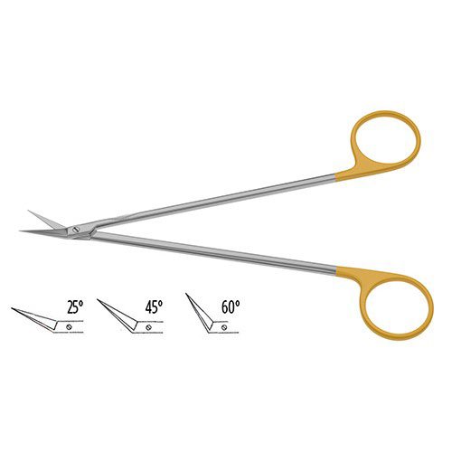 Potts-Smith Scissors are crafted for use in a wide range of cardiothoracic surgical procedures requiring vascular incision or cutting. This scissors come equipped with carbide inserts reinforcing their strength while maintaining the lightweight feel. Additionally, these jaws come angled on the side making them well suited for access in harder to reach areas without obstructing the view of the surgical field. This scissor is available in three different angles measures: 25, 45 and 60 degrees making it easy to find a tool well suited for any number of surgical approaches.