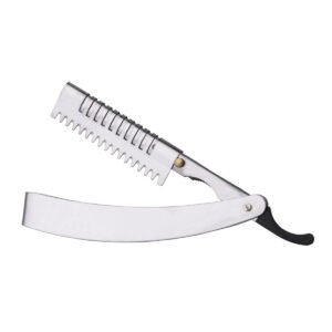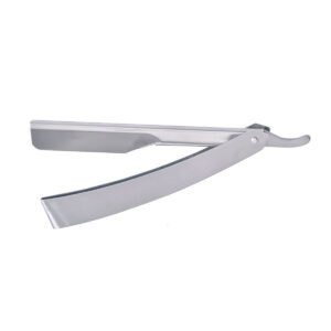 The Dark Stag Folding Kamisori razor is a highly requested variation on one of our flagship products. Featuring exactly the same great shave and rapid blade change mechanism that is still making the original Kamisori so well known amongst the barber community, but now featuring a folding design for greater portability and a slightly different take on style. Brand new and unique to Dark Stag, this straight handled folding Kamisori razor uses regular double edge razor blades meaning you can choose your favorite brand. With one edge used per client this provides the most cost effective route to a perfect shave. The spring mounted one touch blade holding mechanism can be opened easily for cleaning and disinfecting. Changing the blade takes 2 seconds: pinch the head to drop out the used blade and pop in the replacement.