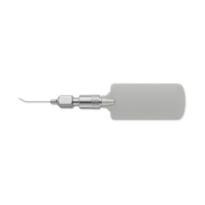 25-gauge  Welsh Flat Olive Tip Cannula is a useful tool in cataract procedures. The olive tip of the cannula is designed to create a space for aspiration between the anterior capsule and the surrounding tissue. The shaft of the cannula is available curved right, left, or straight depending on surgical preference.